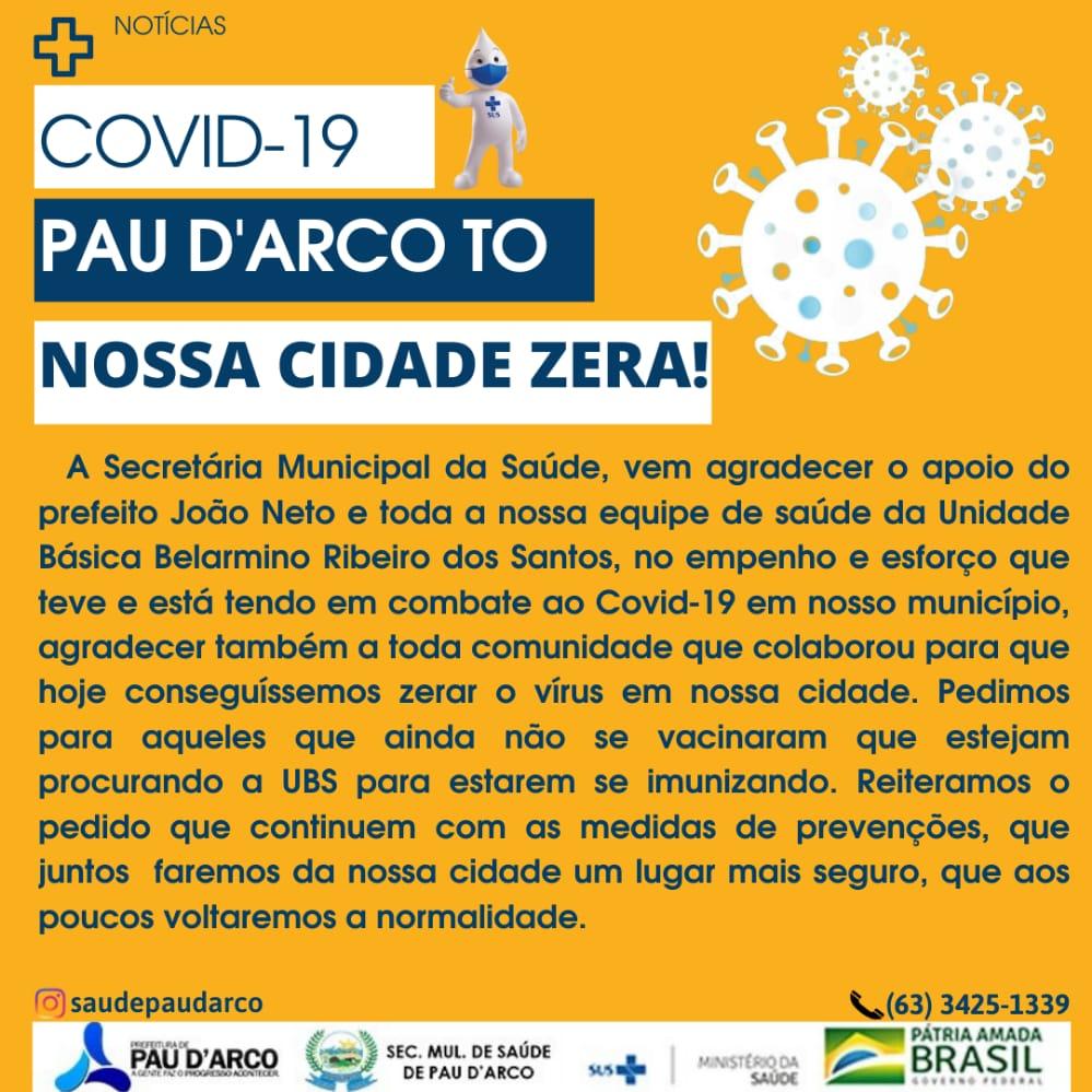 SECRETARIA MUNICIPAL DE SAÚDE, DIVULGA DADOS ATUALIZADOS  DO NOVO CORONAVÍRUS  EM PAU D'ARCO